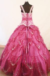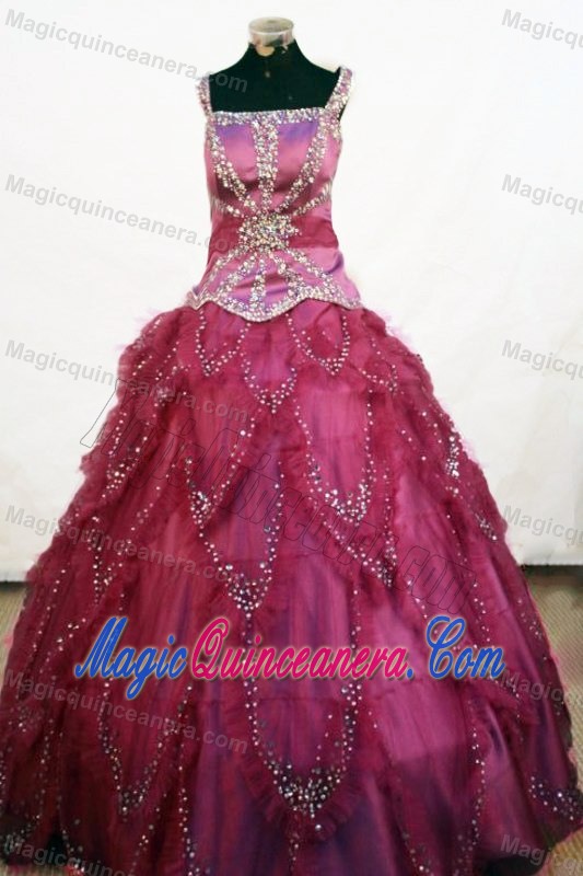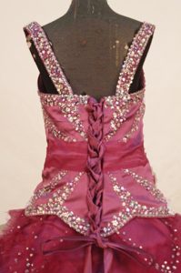 Square Fuchsia Ruffles Little Girl Pageant Dresses Beaded