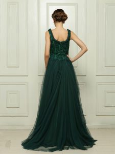 , Square Sleeveless Tulle Prom Dress Beading Sweep Train Zipper