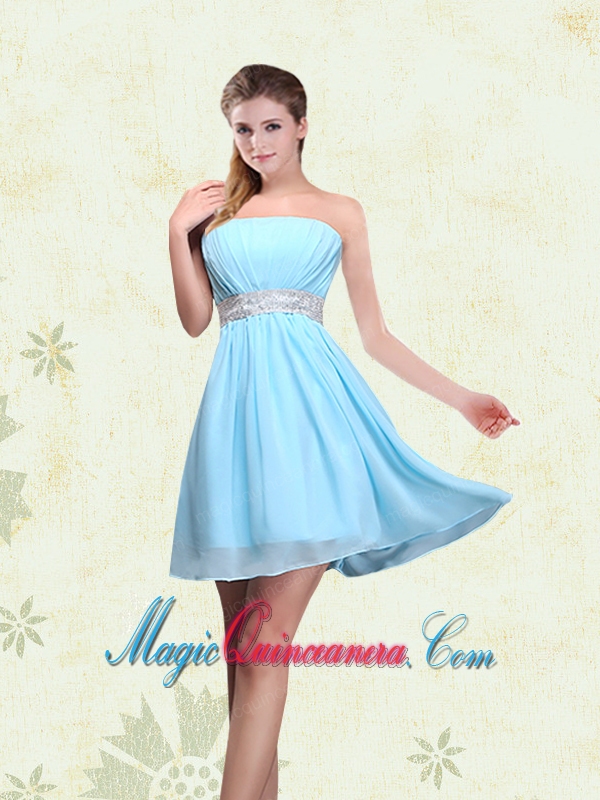 sweet mini length dama dress in 2016, Strapless A Line Ruching Sequins Chiffon Dama Dresses