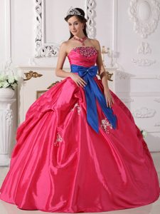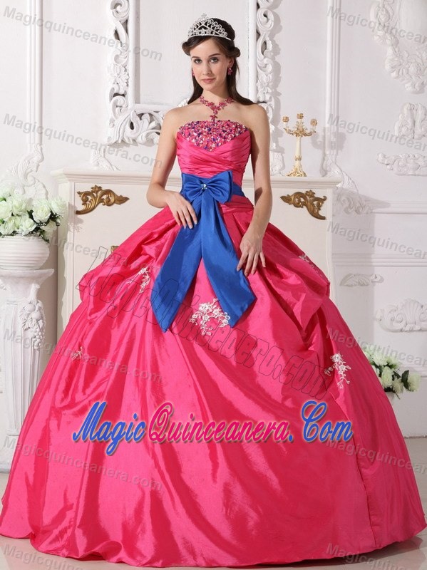 taffeta quinceanera gowns with pick ups and bow,