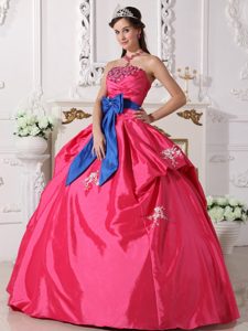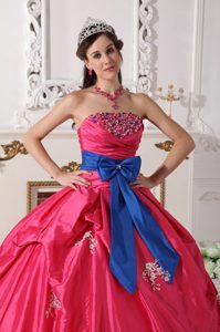 Strapless Bowknot Hot Pink Beaded Sweet 16 Quinceanera Dress