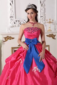 cheap quinceanera dress in san esteban, Strapless Bowknot Hot Pink Beaded Sweet 16 Quinceanera Dress