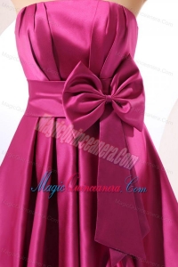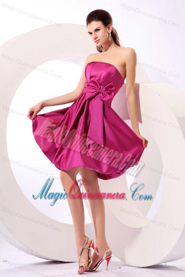 Strapless Fuchsia Dresses for Dama with Bow Knot A-line Knee-length