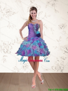 multi color family celebration dress, Strapless Multi Color Discount Dama Dress with Beading and Hand Made Flower
