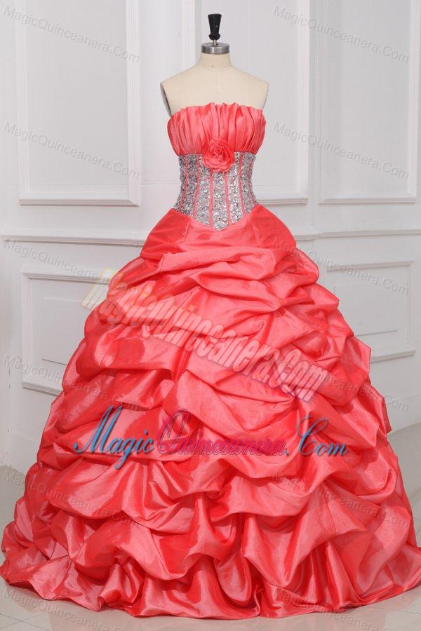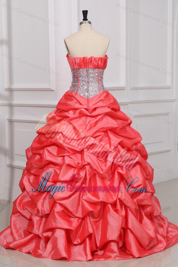 Strapless Sequins and Pick-ups Long Quinceanera Dress in Watermelon