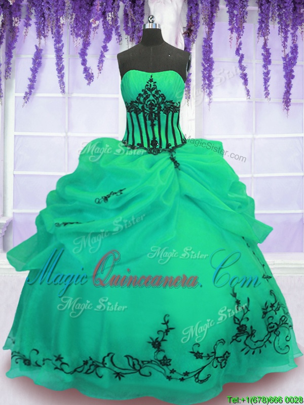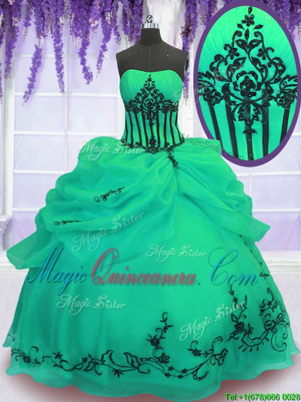 , Strapless Sleeveless Lace Up 15 Quinceanera Dress Green Organza