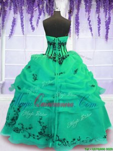 Strapless Sleeveless Lace Up 15 Quinceanera Dress Green Organza