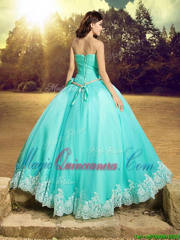 , Strapless Sleeveless Lace Up Sweet 16 Quinceanera Dress Apple Green Tulle