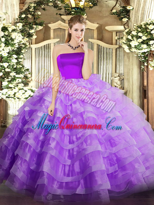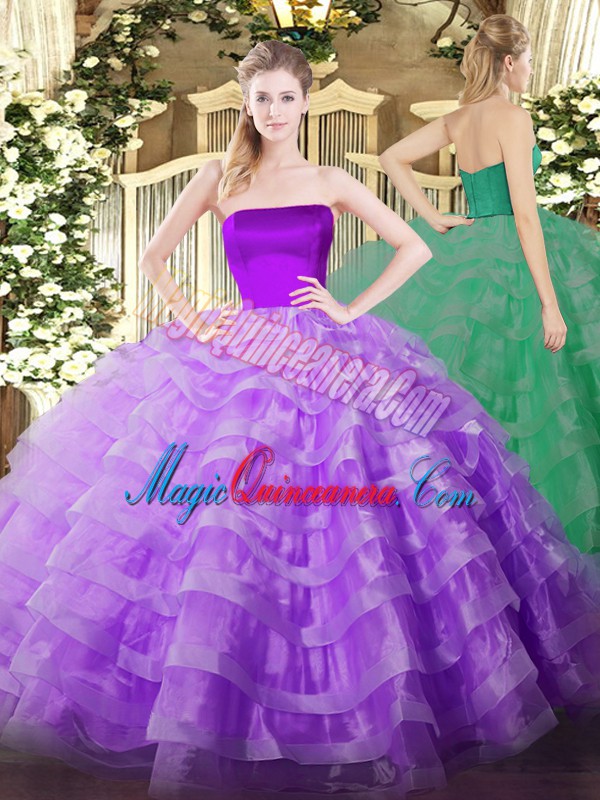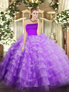 Strapless Sleeveless Tulle 15th Birthday Dress Ruffled Layers Zipper