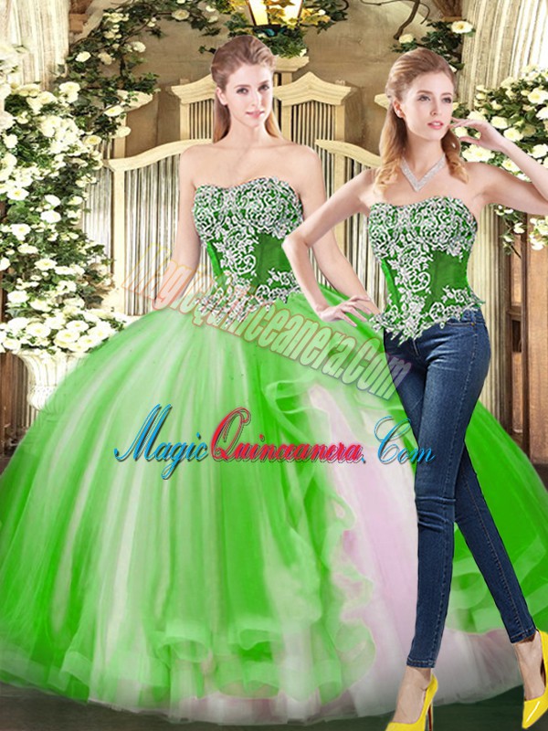 Strapless Sleeveless Tulle Sweet 16 Dress Beading Lace Up
