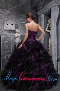 Strapless Taffeta and Organza Appliques and Ruffles Multi-color Vintage Sweet 15 Dress