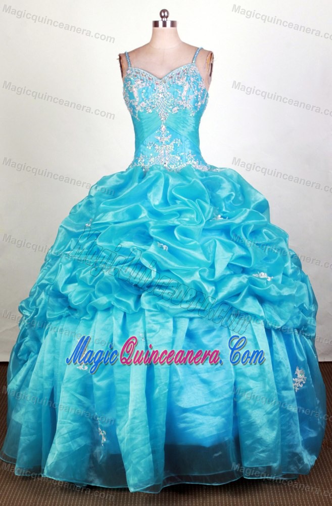 blue quince dresses2010 in santo domingo de guzmán, Straps Appliques Pick Ups Beading Aqua Blue Dress For Quinceanera