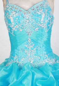 Straps Appliques Pick Ups Beading Aqua Blue Dress For Quinceanera