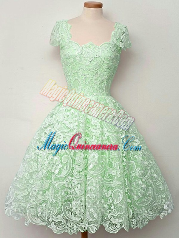 Straps Cap Sleeves Damas Dress Knee Length Lace Apple Green Lace