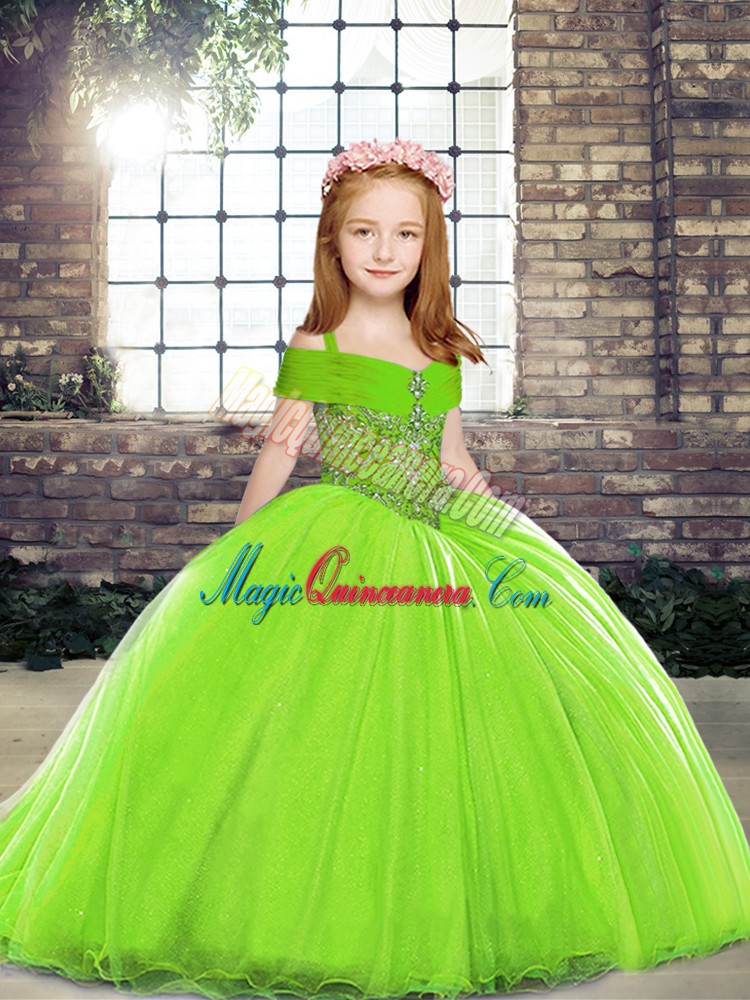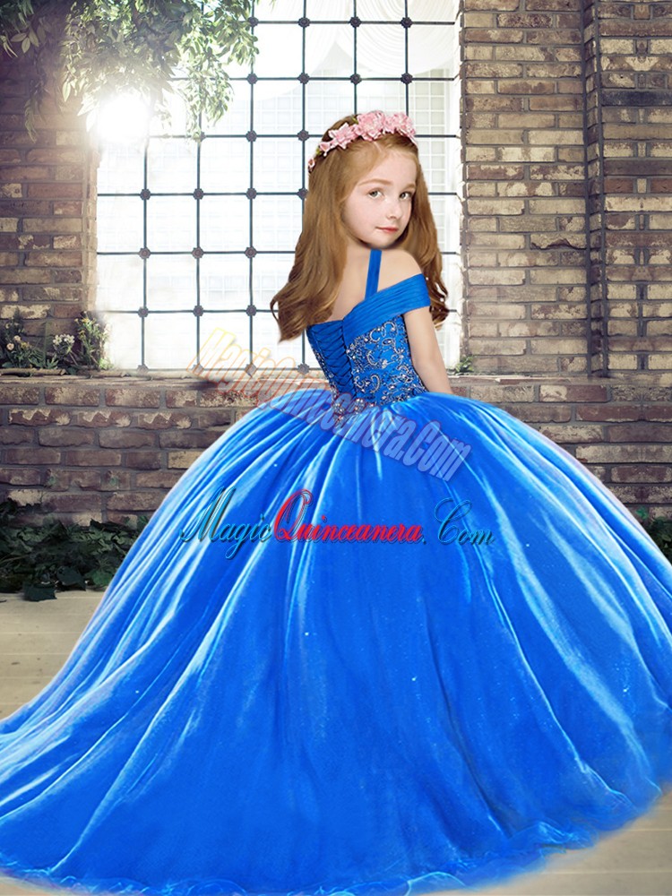 , Straps Lace Up Beading Pageant Dresses Brush Train Sleeveless
