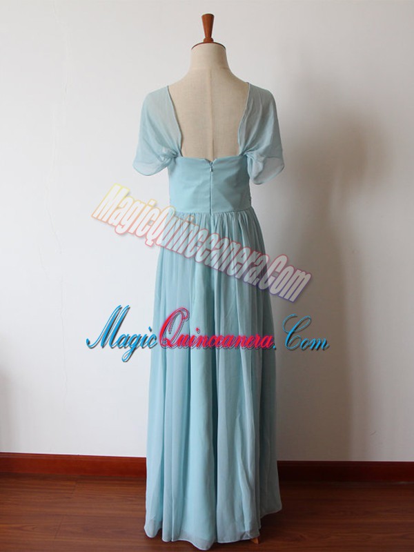 Straps Sleeveless Chiffon Quinceanera Court Dresses Ruching Zipper