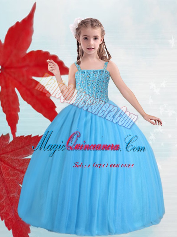 Straps Sleeveless Lace Up Floor Length Beading Glitz Pageant Dress