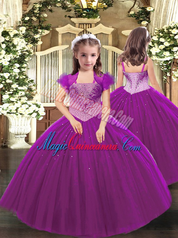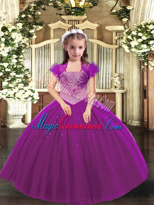 , Straps Sleeveless Lace Up Glitz Pageant Dress Fuchsia Tulle