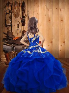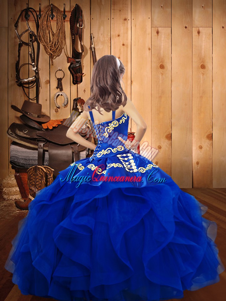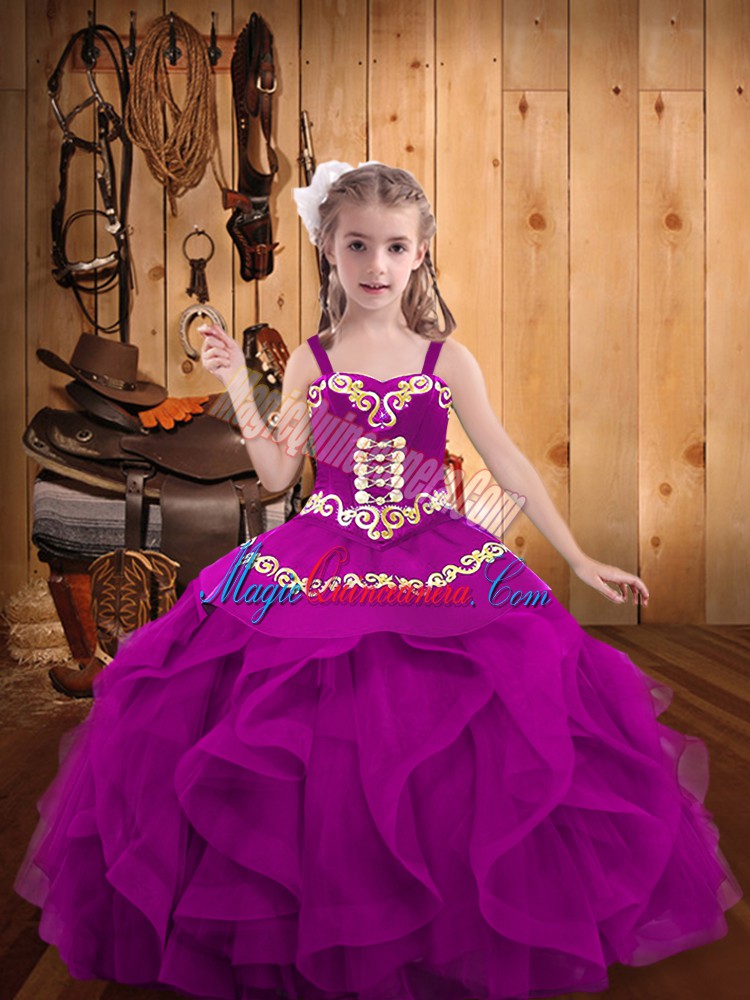, Straps Sleeveless Lace Up High School Pageant Dress Fuchsia Organza