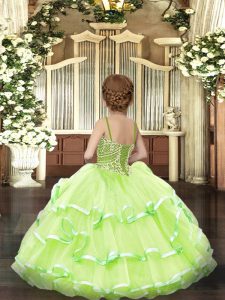 , Straps Sleeveless Lace Up Kids Formal Wear Aqua Blue Organza