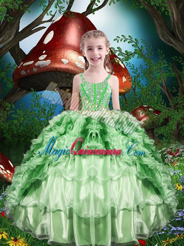 Straps Sleeveless Organza Pageant Dress Womens Beading and Ruffles and Ruffled Layers Lace Up