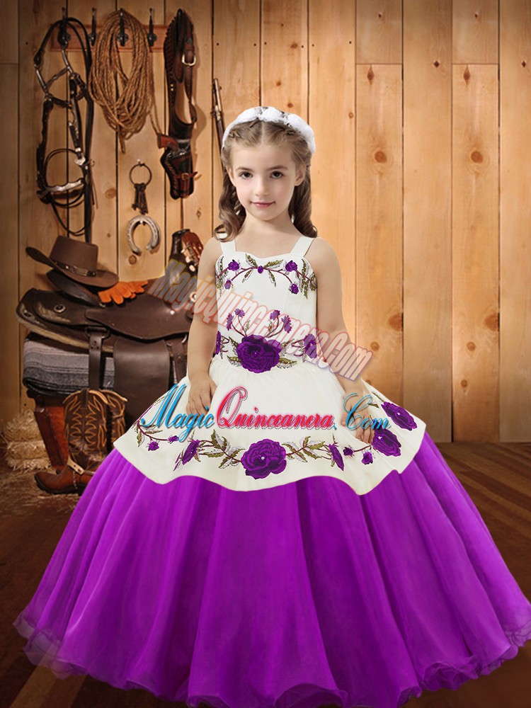 Straps Sleeveless Organza Pageant Gowns Embroidery Lace Up