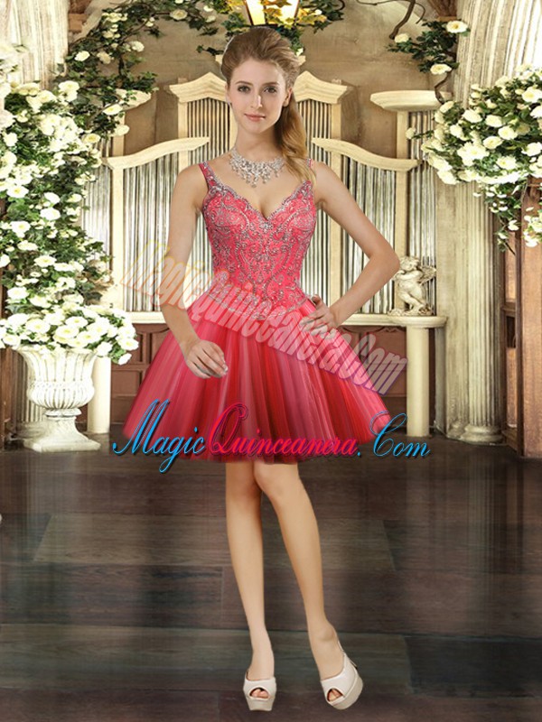 Straps Sleeveless Tulle Ball Gown Prom Dress Beading Lace Up