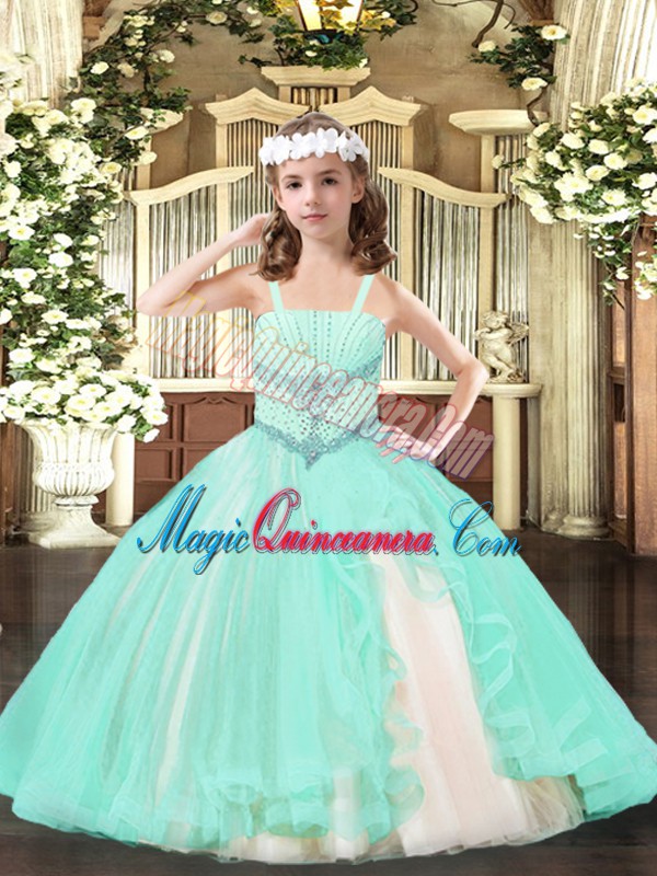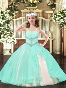 Straps Sleeveless Tulle Little Girl Pageant Dress Beading Lace Up