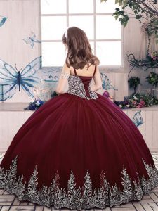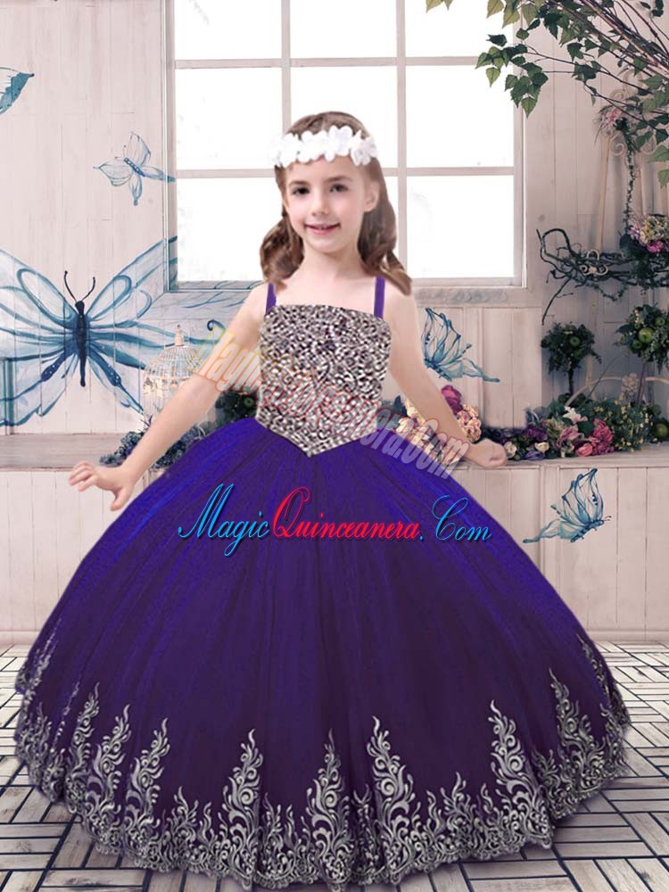 Straps Sleeveless Tulle Little Girl Pageant Gowns Beading and Embroidery Lace Up