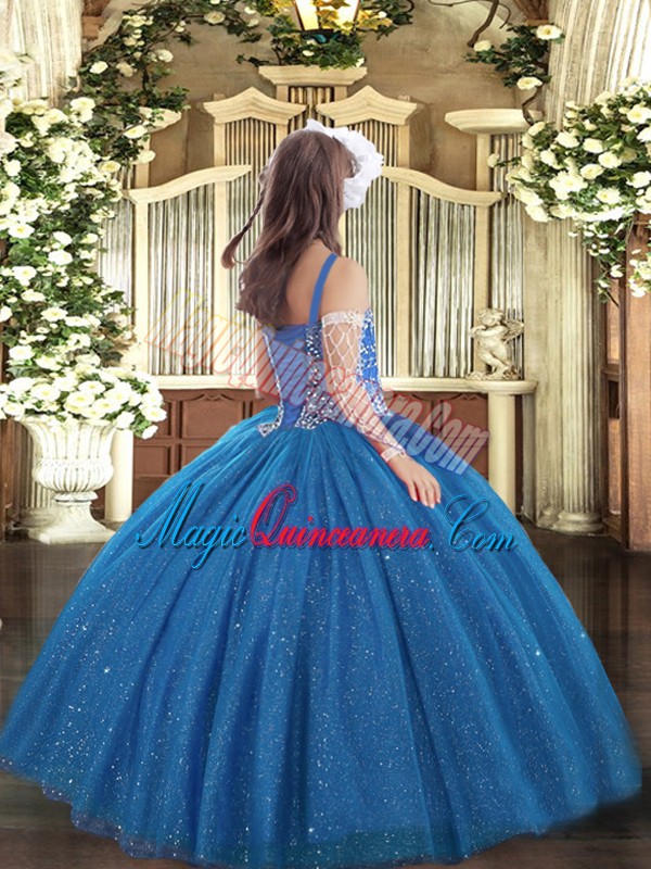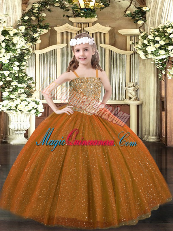 Straps Sleeveless Tulle Pageant Dress Wholesale Beading Lace Up