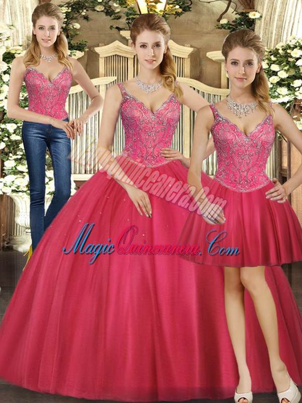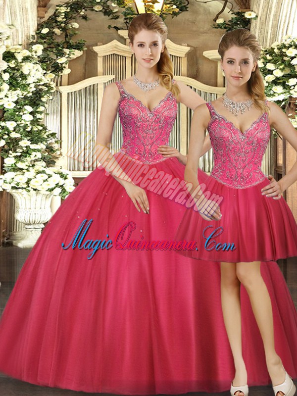 , Straps Sleeveless Tulle Quinceanera Gown Beading Lace Up