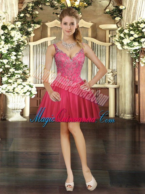 Straps Sleeveless Tulle Quinceanera Gown Beading Lace Up