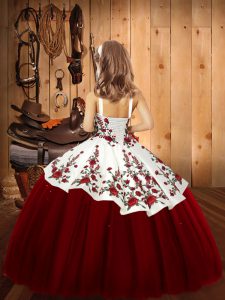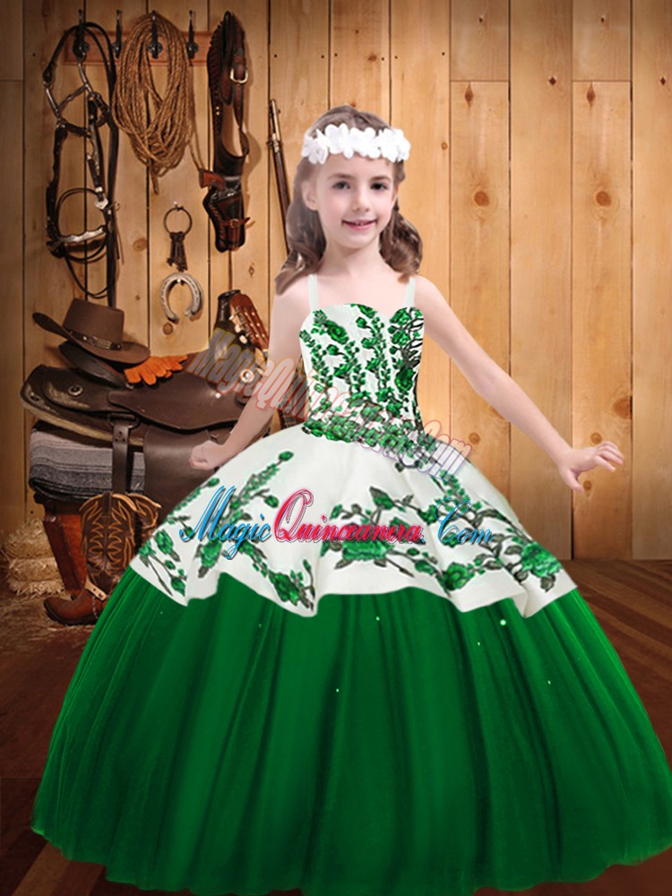 , Straps Sleeveless Winning Pageant Gowns Floor Length Embroidery Dark Green Tulle