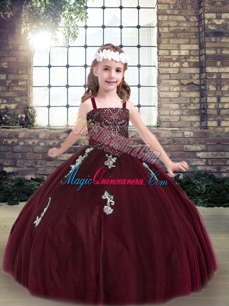 Stunning Floor Length Ball Gowns Sleeveless Burgundy Little Girls Pageant Dress Lace Up