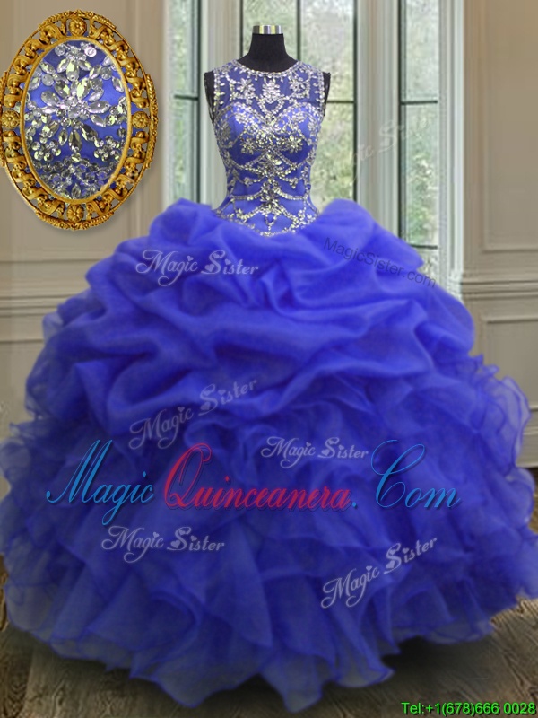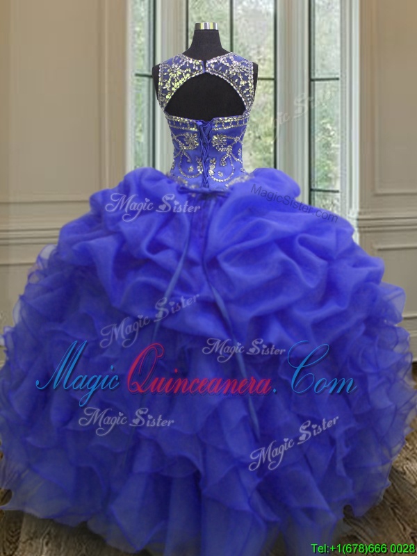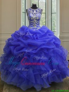 , Stunning Floor Length Royal Blue Quinceanera Gowns Scoop Sleeveless Lace Up