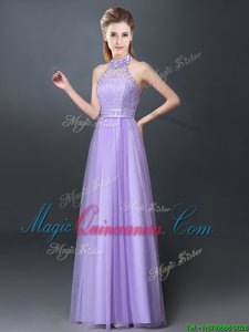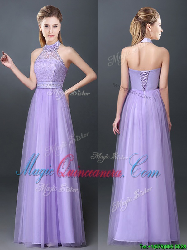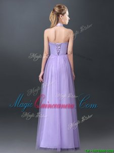 Stunning Lavender Halter Top Lace Up Lace and Appliques Quinceanera Court Dresses Sleeveless