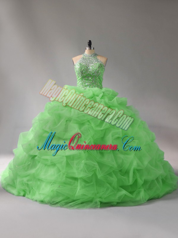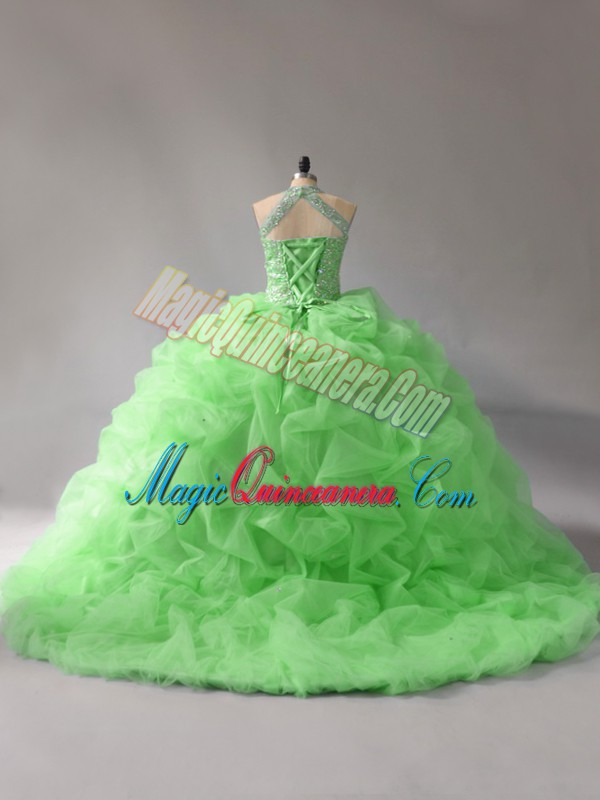 , Stunning Sleeveless Court Train Beading and Pick Ups Lace Up Sweet 16 Dress