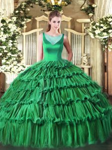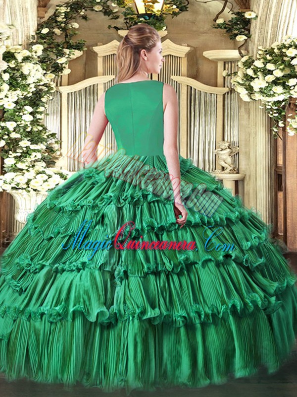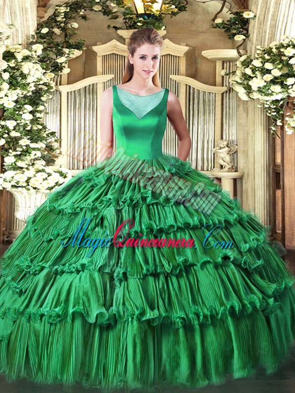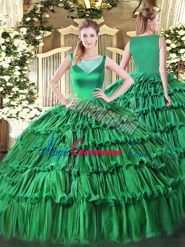 Stunning Sleeveless Floor Length Beading and Ruffled Layers Side Zipper Quince Ball Gowns with Turquoise
