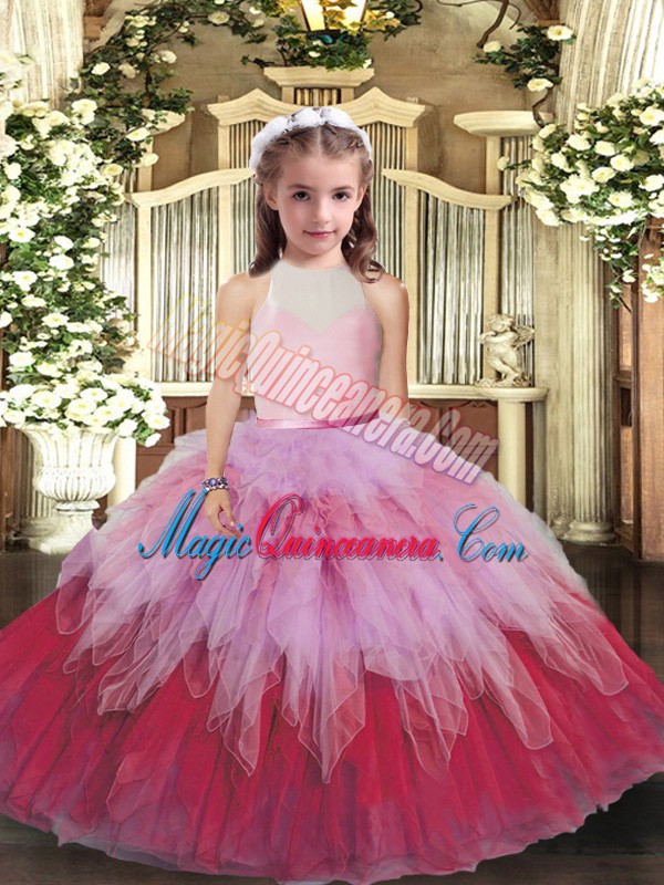 Stunning Sleeveless Ruffles Backless Pageant Gowns For Girls