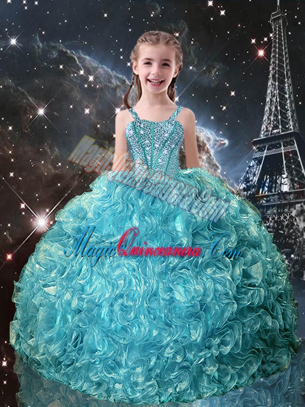 Stunning Straps Sleeveless Lace Up Kids Pageant Dress Teal Organza