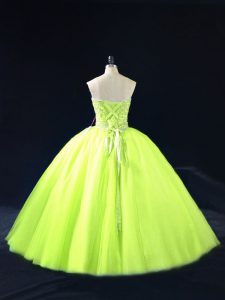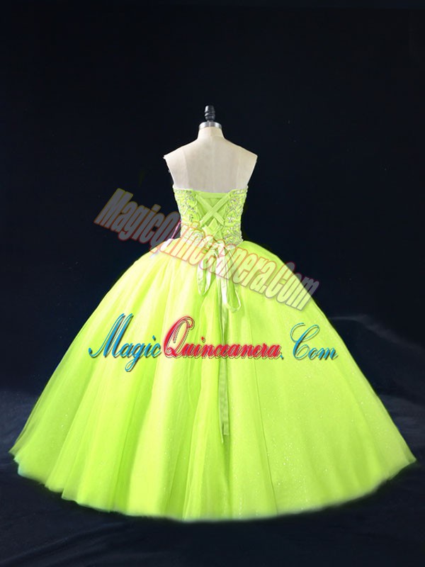 Stunning Yellow Green Sweetheart Lace Up Beading Quince Ball Gowns Sleeveless