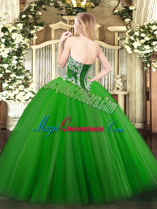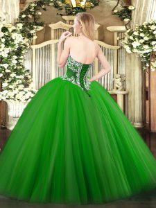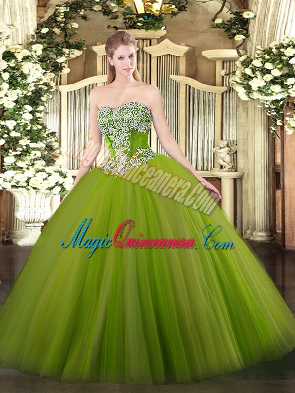 Stylish Sleeveless Floor Length Beading Lace Up Sweet 16 Quinceanera Dress with Olive Green