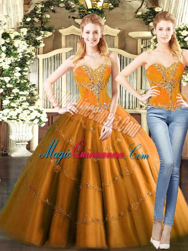 Stylish Two Pieces Quince Ball Gowns Orange Red Sweetheart Tulle Sleeveless Mini Length Lace Up