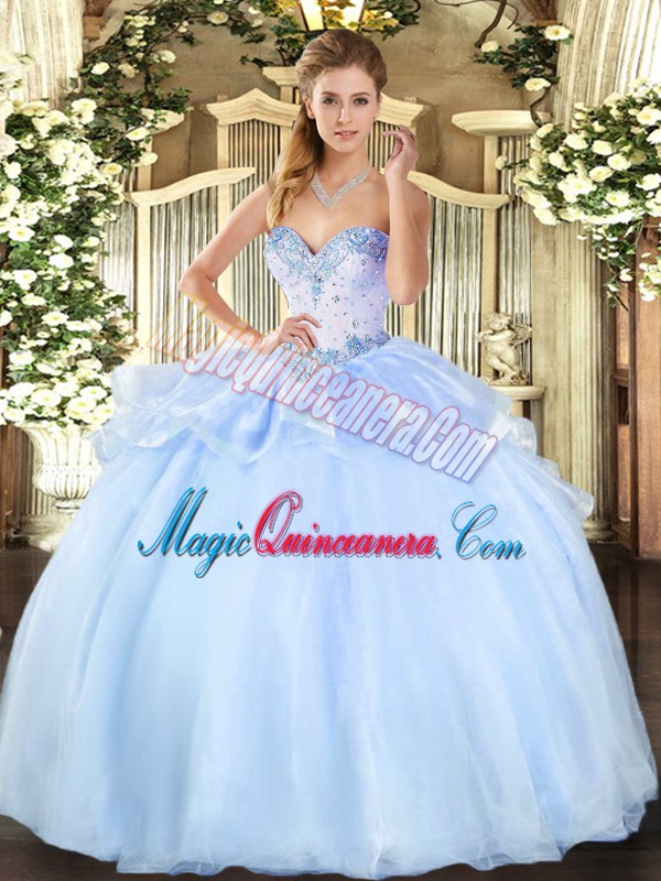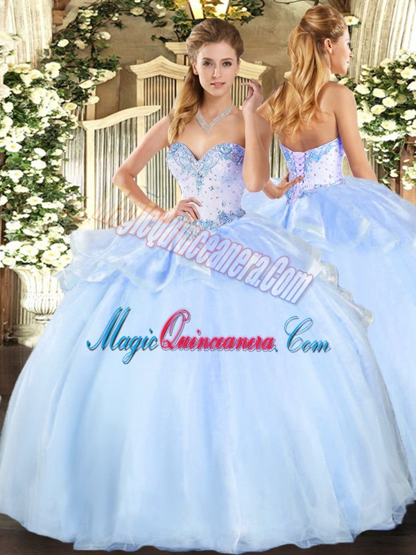Suitable Light Blue Organza Lace Up Sweet 16 Dresses Sleeveless Floor Length Beading