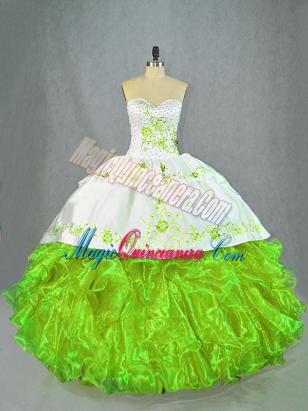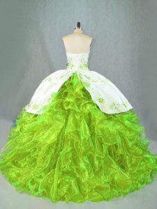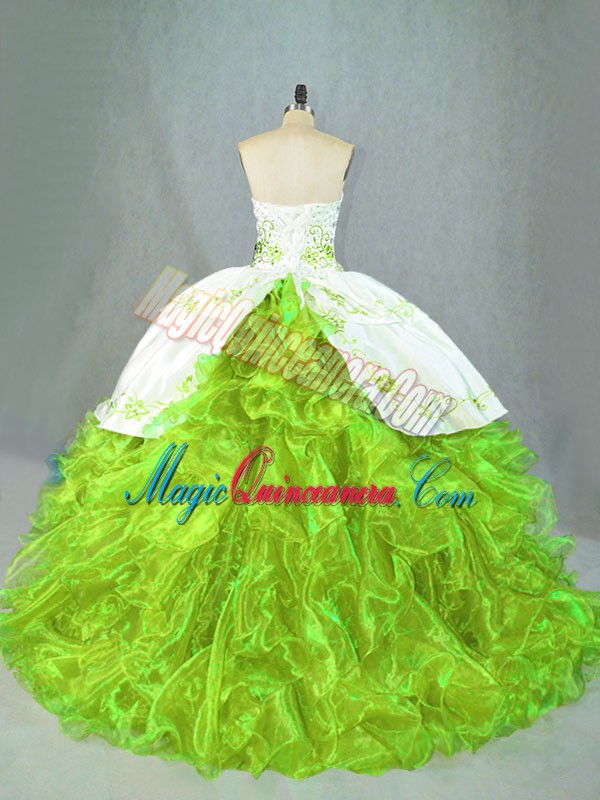 Suitable Sweetheart Sleeveless Brush Train Lace Up Sweet 16 Dresses Green Satin and Organza