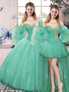 , Suitable Tulle Sleeveless Floor Length Sweet 16 Quinceanera Dress and Beading