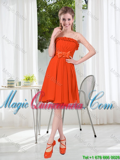 Summer A Line Strapless Bowknot Dama Dress in Rust Red