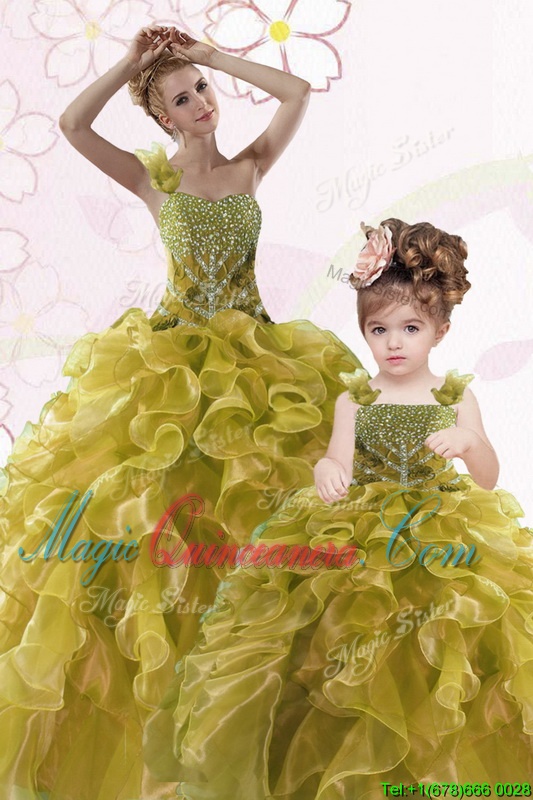 Sumptuous Beading and Ruffles Sweet 16 Quinceanera Dress Olive Green Lace Up Sleeveless Floor Length
