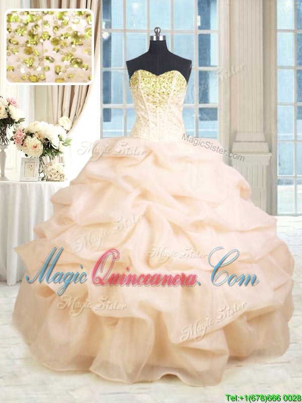 Sumptuous Peach Sleeveless Organza Lace Up Quinceanera Gown for Military Ball and Sweet 16 and Quinceanera - Magic Quinceanera