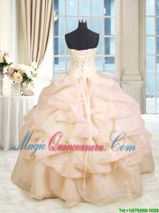 Sumptuous Peach Sleeveless Organza Lace Up Quinceanera Gown for Military Ball and Sweet 16 and Quinceanera